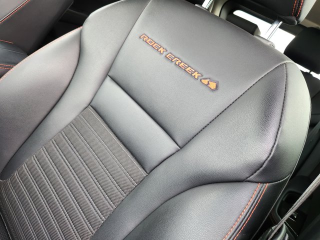- CHARCOAL LEATHERETTE & BALLISTIC NYLON SEATING W/CONTRAST STITCH & ROCK CREEK LOGO